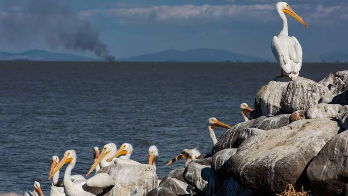 Petatán, un pueblo del estado Michoacán en México, adonde miles de pelícanos borregones procedentes de Canadá migran buscando calor y…