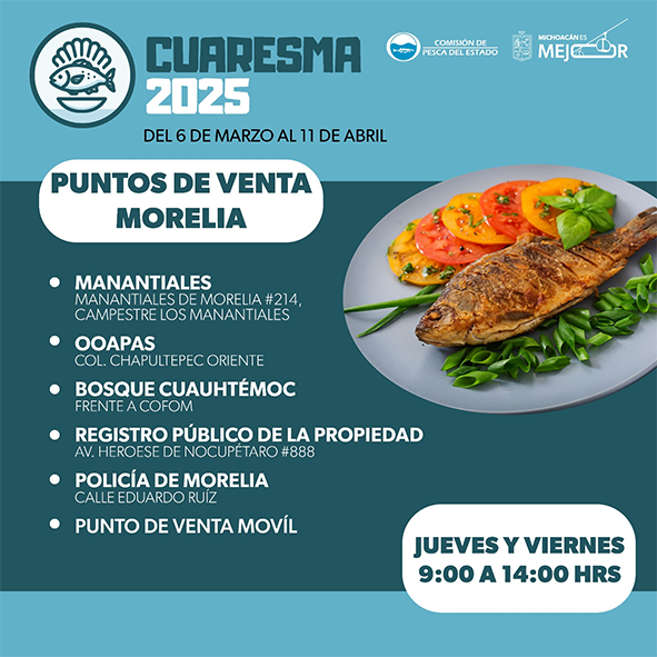 Detalló que se instalarán puntos de venta en los municipios de Venustiano Carranza, Puruándiro, Zitácuaro, Parácuaro, Uruapan, Tzintzuntzan, Tacámbaro y Apatzingán, los cuales operarán todos los días viernes durante la temporada de Cuaresma.
